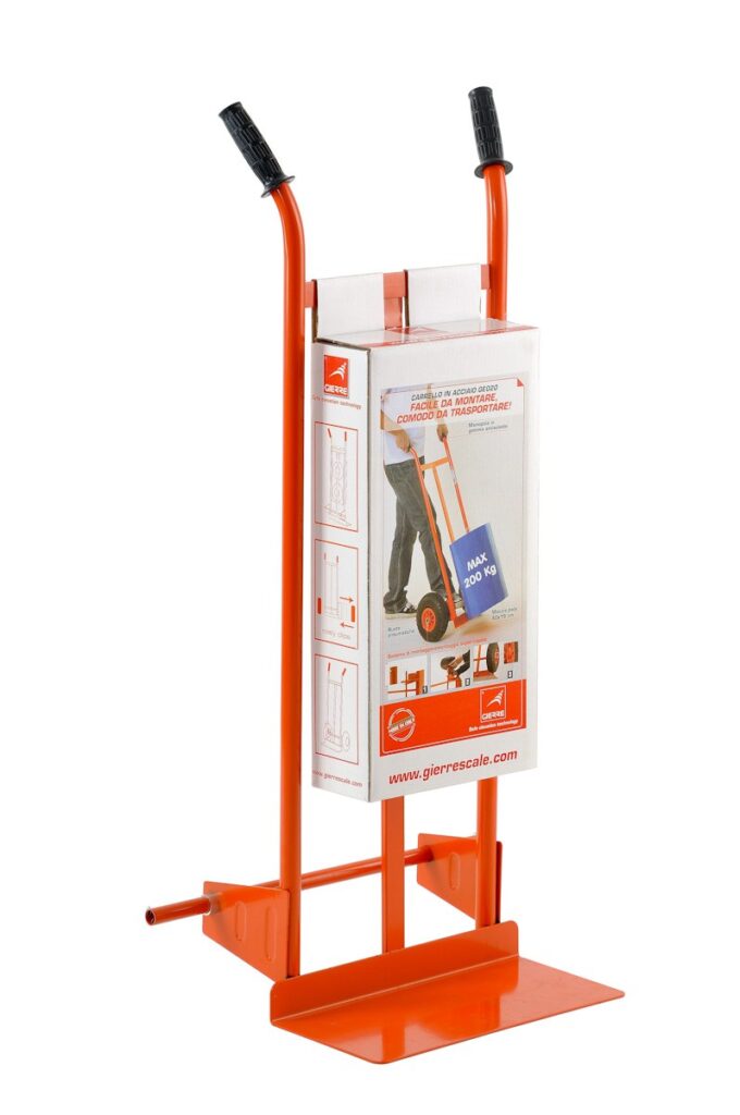 Carrello Gierre GE020 in acciaio, con pala fissa, ruote pneumatiche.