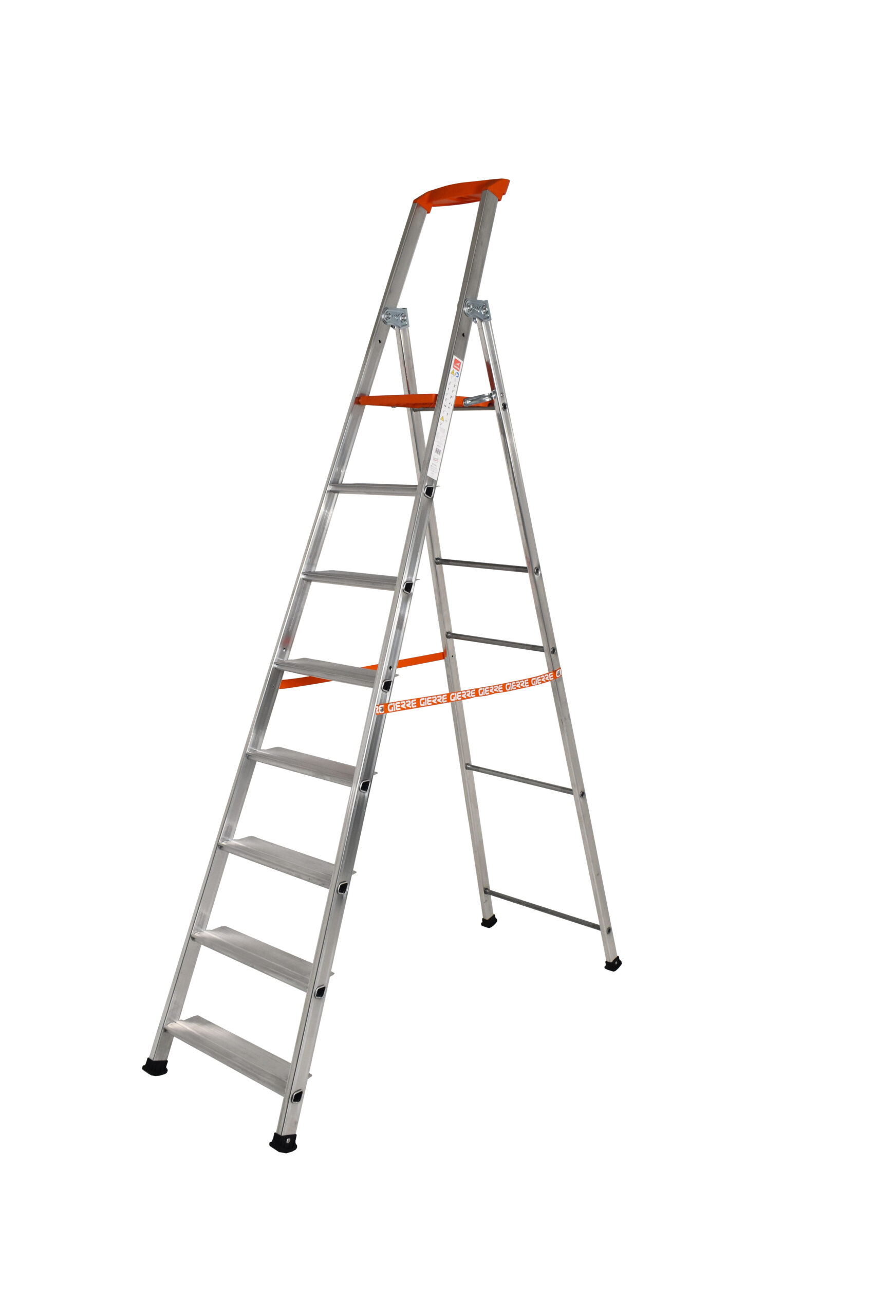 La Scala domestica Gierre Stabila 110 alu 150 ha la piattaforma (260x260 mm) è in plastica e fibra di vetro si blocca in sicurezza con la sola pressione della mano.