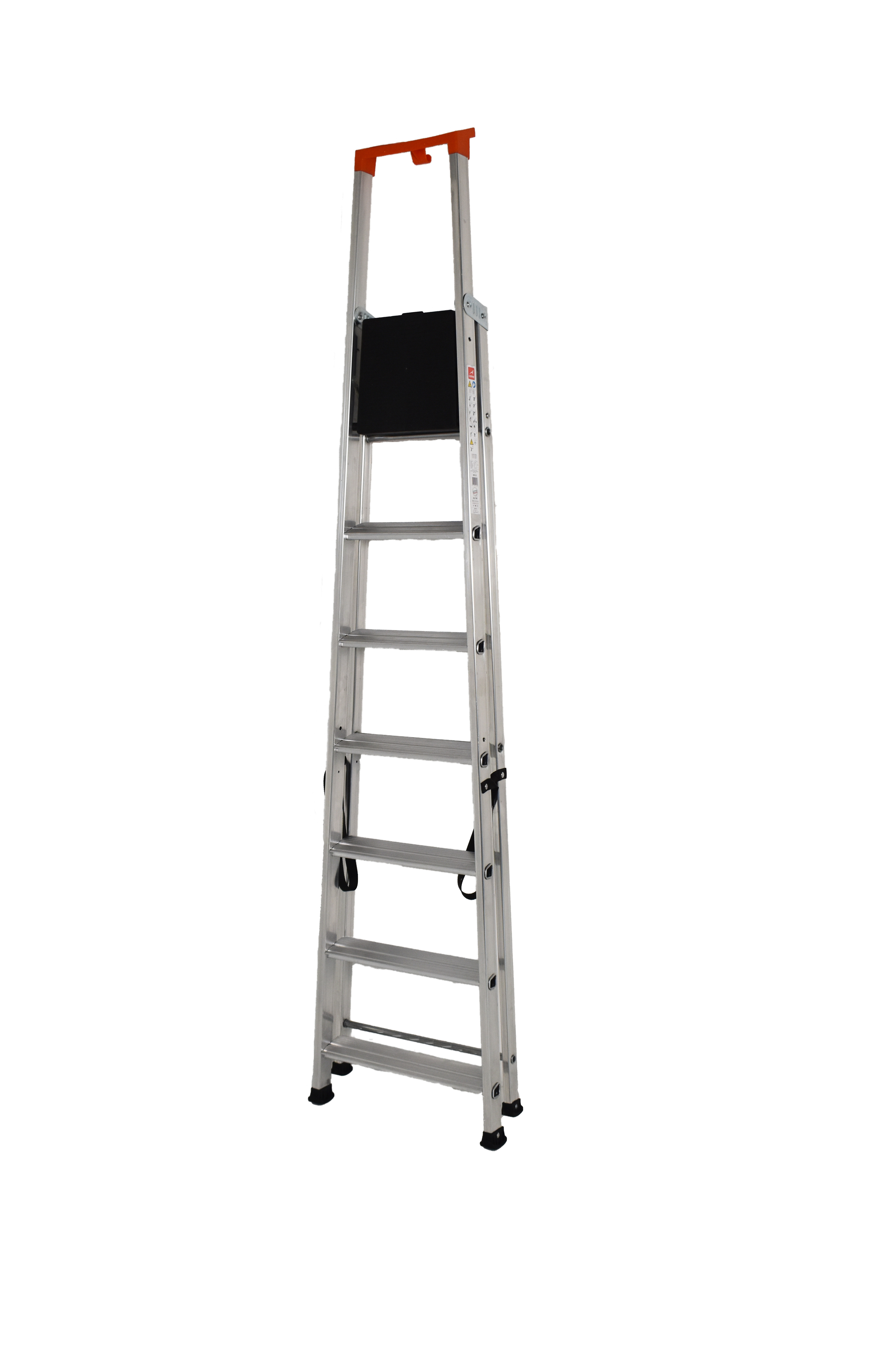 La Scala domestica Gierre Stabila 80 alu 150 ha la piattaforma (260x260 mm) è in plastica e fibra di vetro si blocca in sicurezza con la sola pressione della mano.